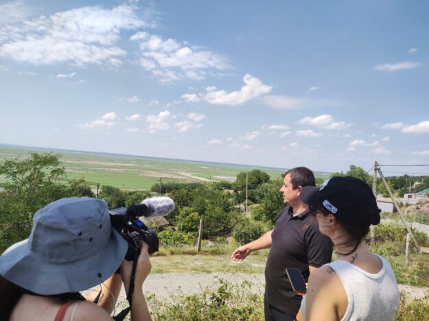 Голова громадської організації «Екосенс» Тетяна Жавжарова продовжує стежити за ситуацією на берегах Дніпра та спустошеного Каховського водосховища. Журналістки із Франції та Швейцарії зацікавилися, як війна вплинула на довкілля в Україні. Тож під час подорожі до Кушугумської громади Запорізької області, ми спитали думку місцевих мешканців, як війна вплинула на їхнє життя.