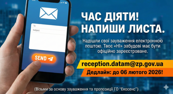 Спільнота ГО «Екосенс» спільно із залученими експертами ГО «Довкола» детально проаналізувала оприлюднені документи у справі «Детальний план території міста Запоріжжя в районі проспекту Маяковського,30/Прибережної автомагістралі», оприлюднені на єдиному порталі Стратегічної екологічної оцінки. Подаємо висновки і зауваження, надіслані нами до Департаменту архітектури та містобудування Запорізької міської ради. 13 листопада 2025 року Департамент архітектури та містобудування Запорізької … Читати далі Про зауваження та пропозиції до Звіту про СЕО та проєкту містобудівної документації: «Детальний план території міста Запоріжжя в районі проспекту Маяковського, 30 / Прибережної автомагістралі»
