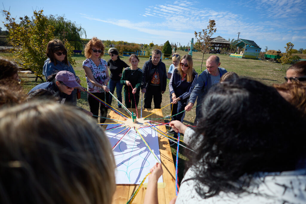 На тренінгу командоутворення «Об’єднуючи людей», організованому ГО «Екосенс», представники і представниці організацій громадянського суспільства, кожна з яких є супергероєм у своїй сфері, шукали свою суперсилу і вчилися взаємодіяти в команді. У теплий жовтневий день представники і представниці Ради відновлення Запоріжжя та партнерських організацій традиційно зібралися у чудовій локації степової України – садибі зеленого туризму «Етносело» під Запоріжжям – для навчання та спілкування. Ділилися досвідом, обговорювали важливі робочі моменти, надихалися природою та трішки рефлексували, раптом опинившись поза містом, яке майже щодня – під обстрілами.