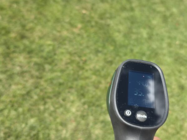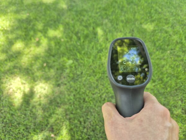 Контраст особливо помітний на ділянках із газонним покриттям. Там, де трава залишалася під кроною великого дерева, температура поверхні була в межах +21,9°C-+28°C. Такий газон під відкритим сонцем прогрівався до +35,1°C. Важливо, що вимірювання проводилися після ранкового поливу (без зволоження відмінність могла б бути ще більшою).