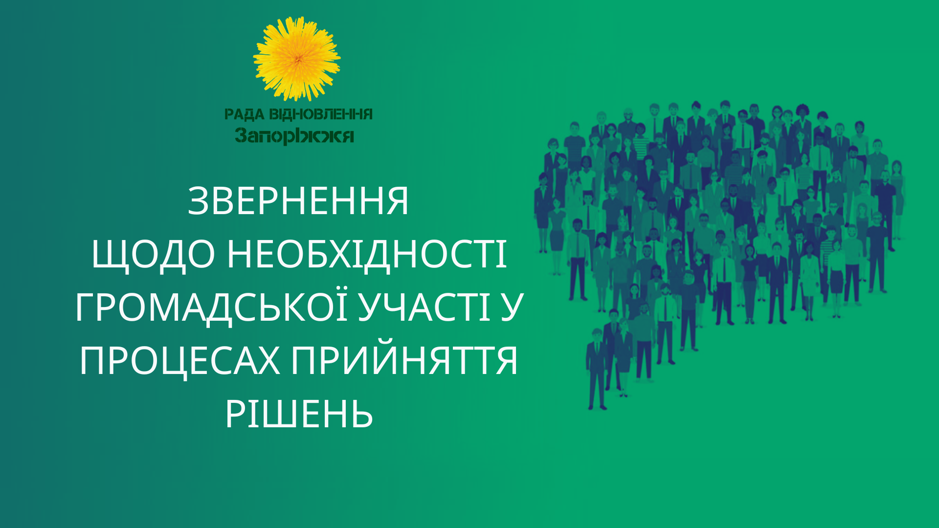 ЩОДО НЕОБХІДНОСТІ ГРОМАДСЬКОЇ УЧАСТІ У ПРОЦЕСАХ ПРИЙНЯТТЯ РІШЕНЬ